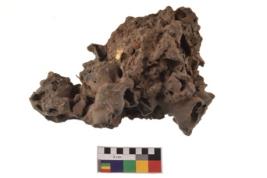 | Description / विवरण | Specimen having round body with perforations and thickly corroded surface. |