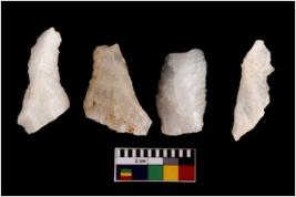 | Description / विवरण | There are n 4 flake cores. All of them are fully fluted flake cores without any trace of crested ridge flakes. Some are tapering at one end and some have sharp edges. |