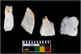 | Description / विवरण | There are n 4 flake cores. All of them are fully fluted flake cores without any trace of crested ridge flakes. Some are tapering at one end and some have blunted edges. |