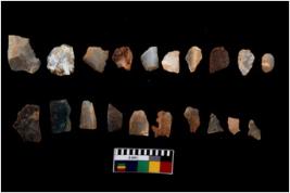 | Description / विवरण | There are n 20 of utilized worked core flakes.They show multi-directional irregular scar pattern. Some are tapering on one end. |