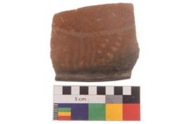 | Description / विवरण | Specimen of black on red ware with decorative geometric Oblique and dot-dot lines painting. |