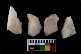 | Description / विवरण | There are n 4 flake cores. All of them are fully fluted flake cores without any trace of crested ridge flakes. Some of them have flat base and some have sharp edges. |