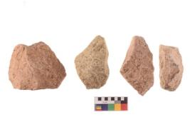 | Description / विवरण | There are n 4 of utilized worked flakes. There are multidirectional irregular dominant scar pattern on both dorsal and ventral face of the flakes.Two of themare tapering at one end and all are having sharp edges. |