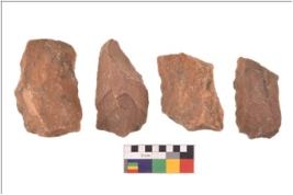| Description / विवरण | There are n 4 utilized flakes; there are multi- directional irregular scar pattern on both dorsal and ventral face of the flakes. Most of them are having sharp edges. |