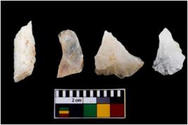 | Description / विवरण | There are n 4 flake cores. All of them are fully fluted flake cores without any trace of crested ridge flakes. Some are tapering at one end and few have sharp edges. |
