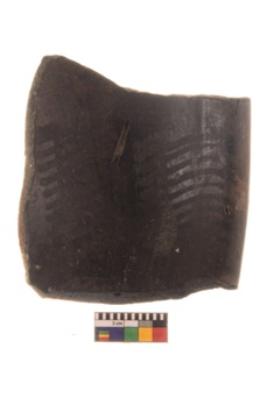 | Description / विवरण | Specimen of potsherd with grey decorative geometric Wavy lines painting. |