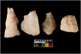 | Description / विवरण | There are n 4 flake cores. All of them are fully fluted flake cores without any trace of crested ridge flakes. Some are tapering at one end and some have sharp edges. |