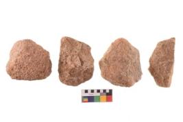 | Description / विवरण | There are n 4 of utilized worked flakes. There are multidirectional irregular dominant scar pattern on both dorsal and ventral face of the flakes.Two of themare tapering at one end and all are having sharp edges. |
