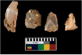 | Description / विवरण | There are n 4 of utilized worked cores. They show multidirectional irregular scar pattern. Three are tapering at one end. |