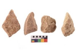 | Description / विवरण | There are n 4 of utilized worked flakes. There are multidirectional irregular dominant scar pattern on both dorsal and ventral face of the flakes.Three of them are tapering at one end and all are having sharp edges. |