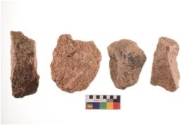 | Description / विवरण | There are n 4 of utilized worked flakes. There are multidirectional irregular dominant scar pattern on both dorsal and ventral face of the flakes.Two of themare tapering at one end and all are having sharp edges. |