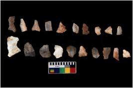 | Description / विवरण | There are n 20 of utilized worked core flakes.They show multi-directional irregular scar pattern. Some are tapering on one end. |