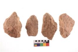 | Description / विवरण | There are n 4 of utilized worked flakes. There are multidirectional irregular dominant scar pattern on both dorsal and ventral face of the flakes.All of them is tapering at one end and all are having sharp edges. |