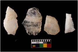 | Description / विवरण | There are n 4 flake cores. All of them are fully fluted flake cores without any trace of crested ridge flakes. Some are tapering at one end and some have sharp edges. |
