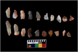 | Description / विवरण | There are n 20 of utilized worked core flakes.They show multi-directional irregular scar pattern. Some are tapering on one end. |