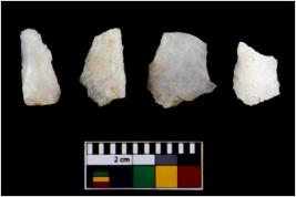 | Description / विवरण | There are n 4 flake cores. All of them are fully fluted flake cores without any trace of crested ridge flakes. Some are tapering at one end and few have sharp edges. |