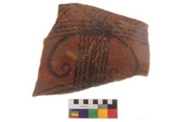 | Description / विवरण | Specimen of black on red ware with decorative geometric Parallel and wavy lines painting. |