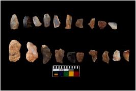 | Description / विवरण | There are n 20 of utilized worked core flakes.They show multi-directional irregular scar pattern. Some are tapering on one end. |