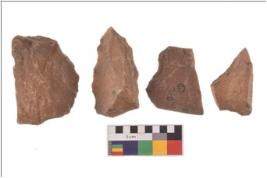| Description / विवरण | There are n 4 utilized flakes; there are multi- directional irregular scar pattern on both dorsal and ventral face of the flakes. Most of them are having sharp edges. |