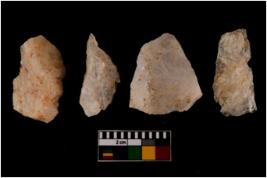 | Description / विवरण | There are n 4 flake cores. All of them are fully fluted flake cores without any trace of crested ridge flakes. Some are tapering at one end and some have sharp edges. |