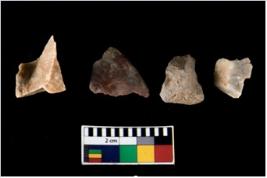 | Description / विवरण | There are n 4 of utilized worked cores. They show multidirectional irregular scar pattern. One is tapering on one end. |
