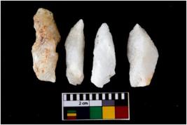| Description / विवरण | There are n 4 flake cores. All of them are fully fluted flake cores without any trace of crested ridge flakes. Some are tapering at one end and few have sharp edges. |