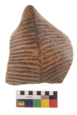 | Description / विवरण | Specimen of a potsherd of black on red ware with decorative geometric Tree motif painting. |