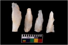 | Description / विवरण | There are n 4 flake cores. All of them are fully fluted flake cores without any trace of crested ridge flakes. Some are tapering at one end and some have sharp edges. |