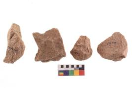 | Description / विवरण | There are n 4 of utilized worked flakes. There are multidirectional irregular dominant scar pattern on both dorsal and ventral face of the flakes.Two of themare tapering at one end and all are having sharp edges. |