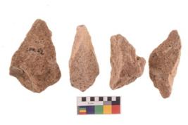| Description / विवरण | There are n 4 of utilized worked flakes. There are multidirectional irregular dominant scar pattern on both dorsal and ventral face of the flakes.Three of them are tapering at one end and all are having sharp edges. |