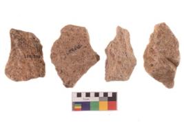 | Description / विवरण | There are n 4 of utilized worked flakes. There are multidirectional irregular dominant scar pattern on both dorsal and ventral face of the flakes.Two of themare tapering at one end and all are having sharp edges. |