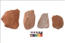 | Description / विवरण | There are n 4 utilized flakes; there are multi- directional irregular scar pattern on both dorsal and ventral face of the flakes. Most of them are having sharp edges. |