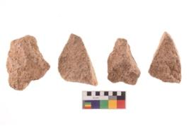 | Description / विवरण | There are n 4 of utilized worked flakes. There are multidirectional irregular dominant scar pattern on both dorsal and ventral face of the flakes.Three of them are tapering at one end and all are having sharp edges. |
