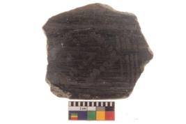 | Description / विवरण | Specimen of potsherd with grey decorative geometric Latticed diamonds and oblique strokes painting. |