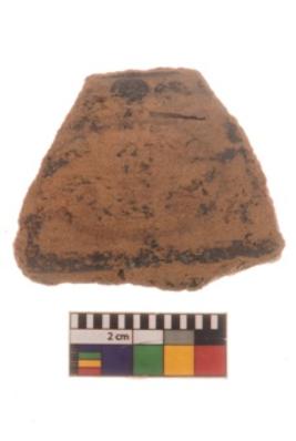| Description / विवरण | Specimen of a potsherd of black on red ware with traces of decorative geometric painting. |