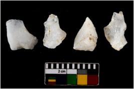 | Description / विवरण | There are n 4 flake cores. All of them are fully fluted flake cores without any trace of crested ridge flakes. Some are tapering at one end and some have blunted edges. |