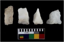 | Description / विवरण | There are n 4 flake cores. All of them are fully fluted flake cores without any trace of crested ridge flakes. They are tapering at one end and some have blunted edges. |