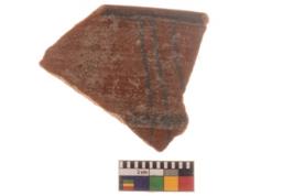 | Description / विवरण | Specimen of a potsherd of black on red ware with traces of decorative geometric Vertical parallel lines painting. |