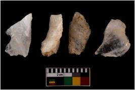 | Description / विवरण | There are n 4 flake cores. All of them are fully fluted flake cores without any trace of crested ridge flakes. Some are tapering at one end and some have sharp edges. |