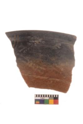 | Description / विवरण | Specimen of black on red ware with decorative geometric Empty diamonds painting. |