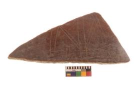 | Description / विवरण | Specimen of a potsherd of red ware with graffiti over the surface. |