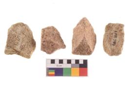 | Description / विवरण | There are n 4 of utilized worked flakes. There are multidirectional irregular dominant scar pattern on both dorsal and ventral face of the flakes.One of them is tapering at one end and all are having sharp edges. |