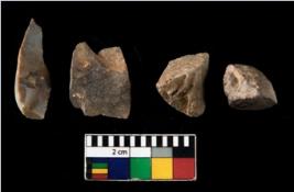 | Description / विवरण | There are n 4 of utilized worked cores. They show multidirectional irregular scar pattern. One is tapering on one end and is elonagted in shape. |