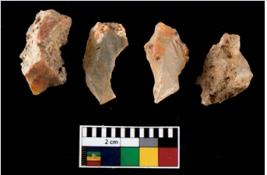 | Description / विवरण | There are n 4 of utilized worked cores. They show multidirectional irregular scar pattern. Three are tapering on one end. |