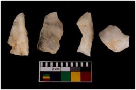 | Description / विवरण | There are n 4 flake cores. All of them are fully fluted flake cores without any trace of crested ridge flakes. Some are tapering at one end and some have sharp edges. |