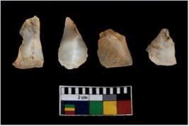 | Description / विवरण | There are n 4 of utilized worked cores. They show multidirectional irregular scar pattern. Two are tapering on one end and three have flat base. |