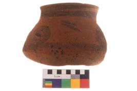 | Description / विवरण | Specimen of a potsherd of black on red ware with traces of decorative geometric Spirals and small strokes painting. |