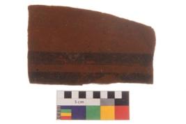 | Description / विवरण | Specimen of a potsherd of black on red ware with decorative geometric parallel lines painting. |
