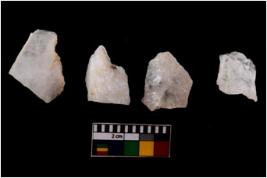 | Description / विवरण | There are n 4 flake cores. All of them are fully fluted flake cores without any trace of crested ridge flakes. Some have sharp edges and some have round edges. |