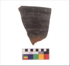 | Description / विवरण | BRW, Specimen of black ware with traces of decorative geometric A groups lines pattern traingles and diamonds painting. |